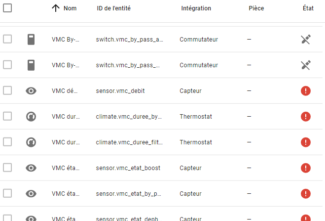 Je viens de relancer mon installation HA après quelques mois d’arrêt. Suite toutes les mises a jour, seul la commande de la VMC ne fonctionne plus. J’ai le défaut suivant: