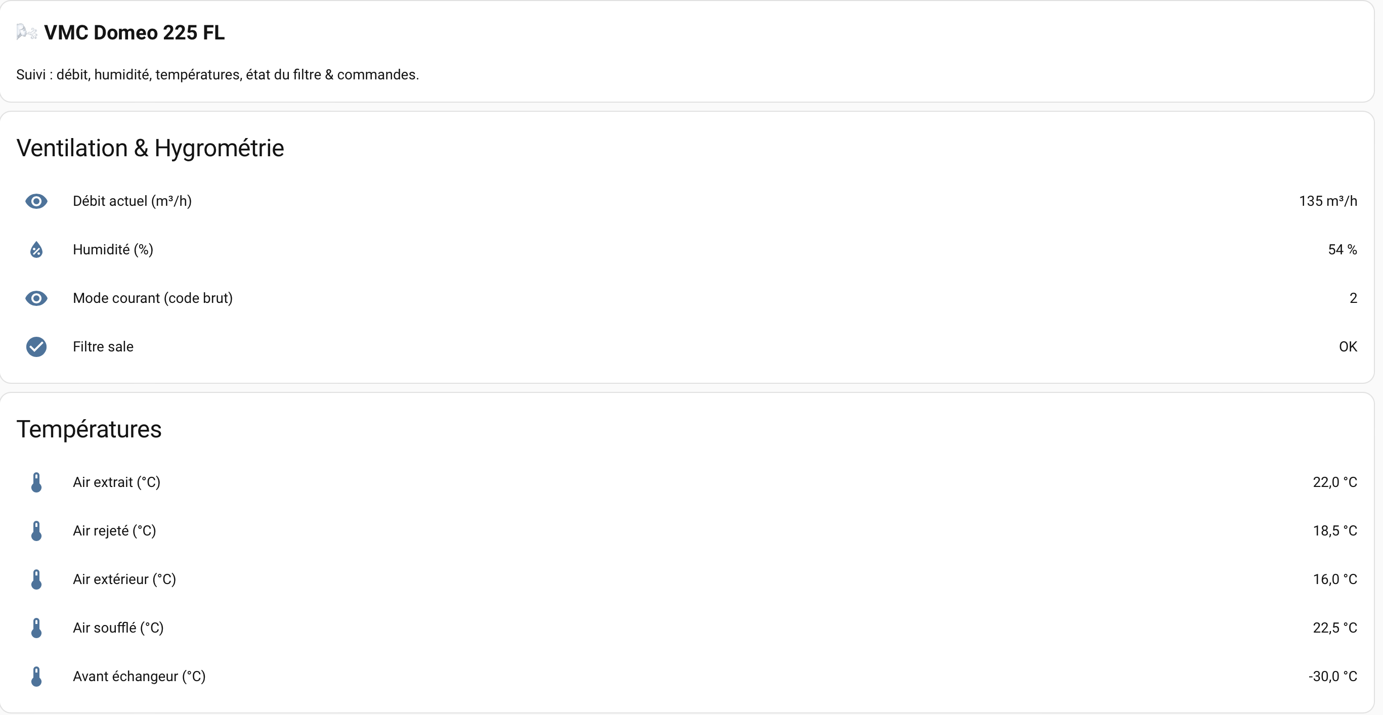 Alors il existe déjà un sujet sur la Domeo 210 mais la table et les entités ne sont pas les mêmes alors j’ai décidé d’ouvrir un nouveau sujet pour aider tous ceux qui comme moi vont galérer avec cette intégration de VMC.