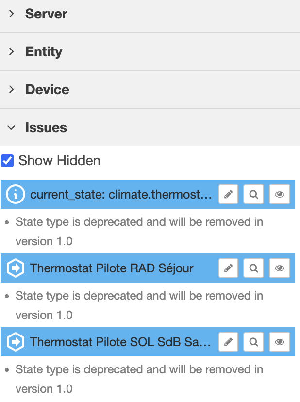 Soyez prudent jusqu’à ce que l’on obtienne une explication claire sur ces warnings. Il semble que le fait de ne pas en tenir compte pour le moment ne soit pas un problème. Sinon, vous risquez de ne plus voir fonctionner vos entités…