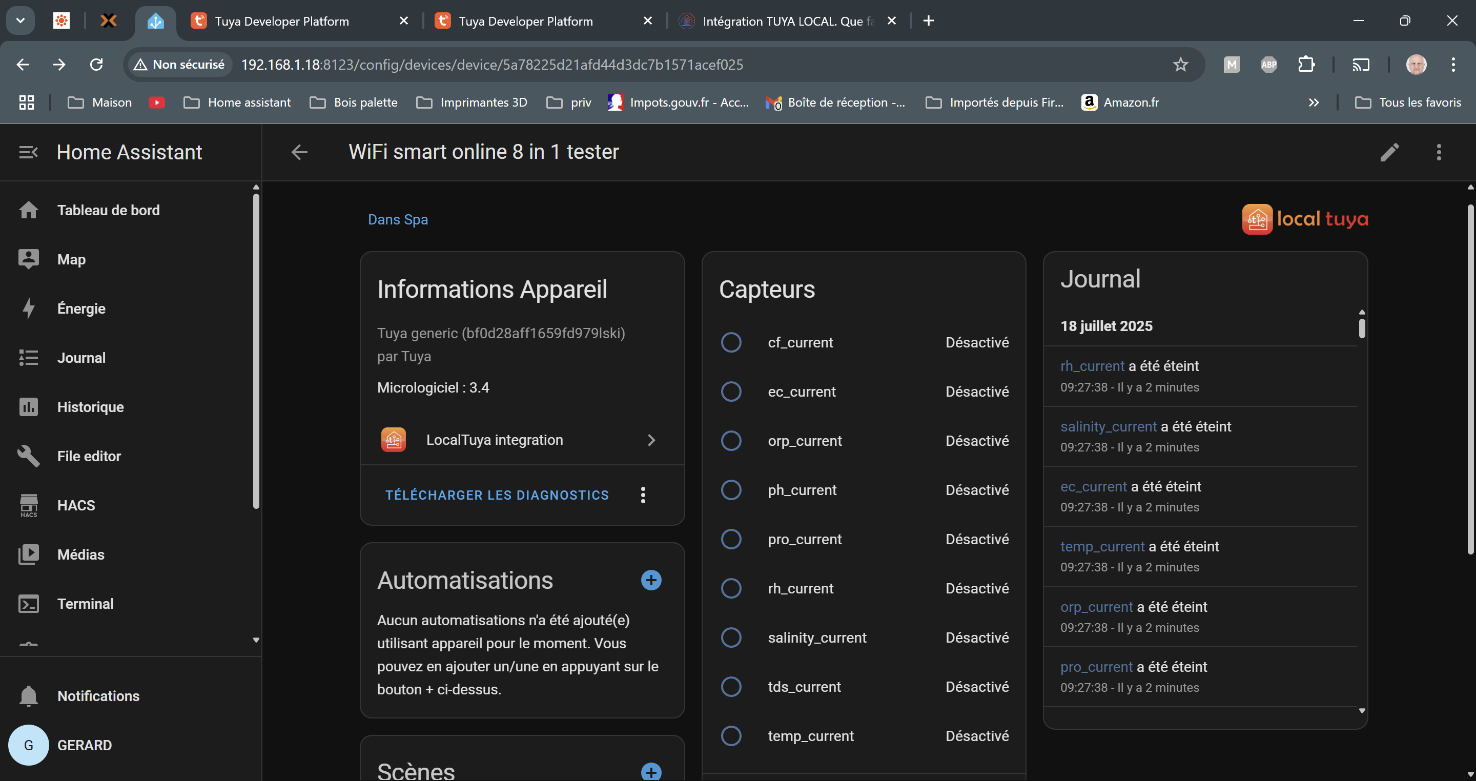 pour trouver les DP de ton appareil pour local tuya.