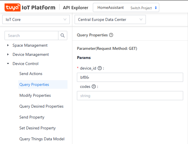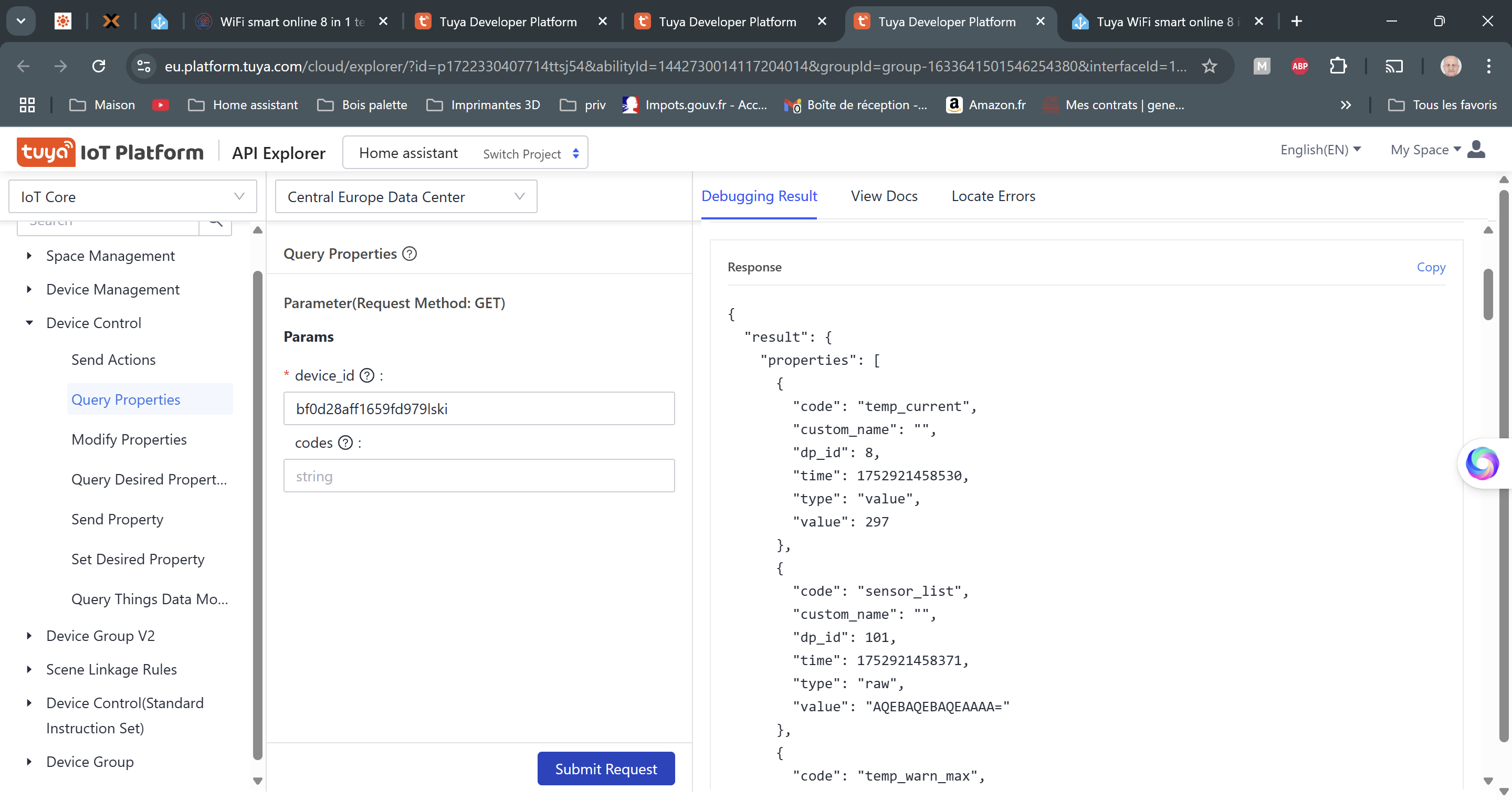 Device control et selectionne Query propriétiesTu colles le Device ID de ton appareil, puis submit request.