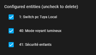 Tu peux éditer des entités déjà créer, dans l’intégration local tuya puis la roue crantée et reconfigurer.