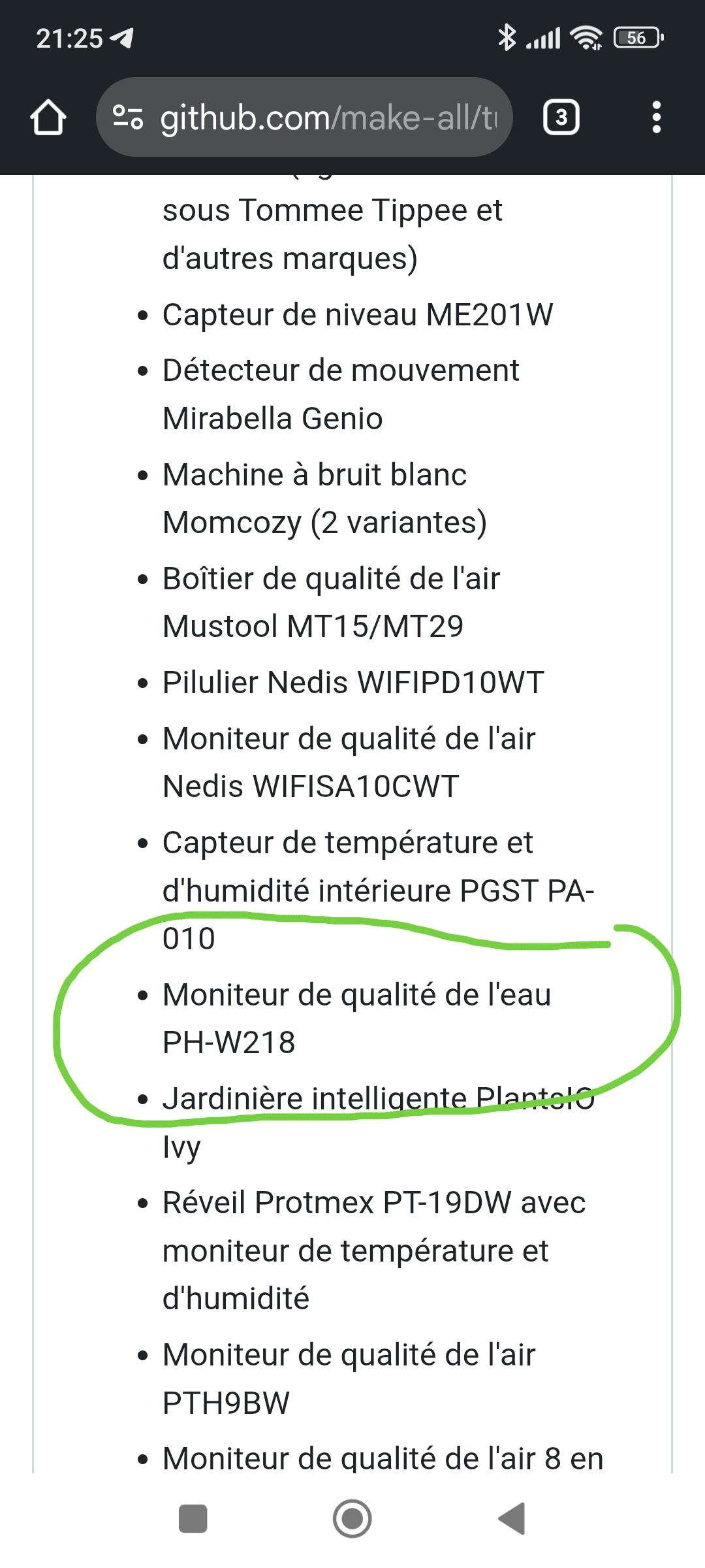 Car normalement, to analyseur d’eau est reconnu.