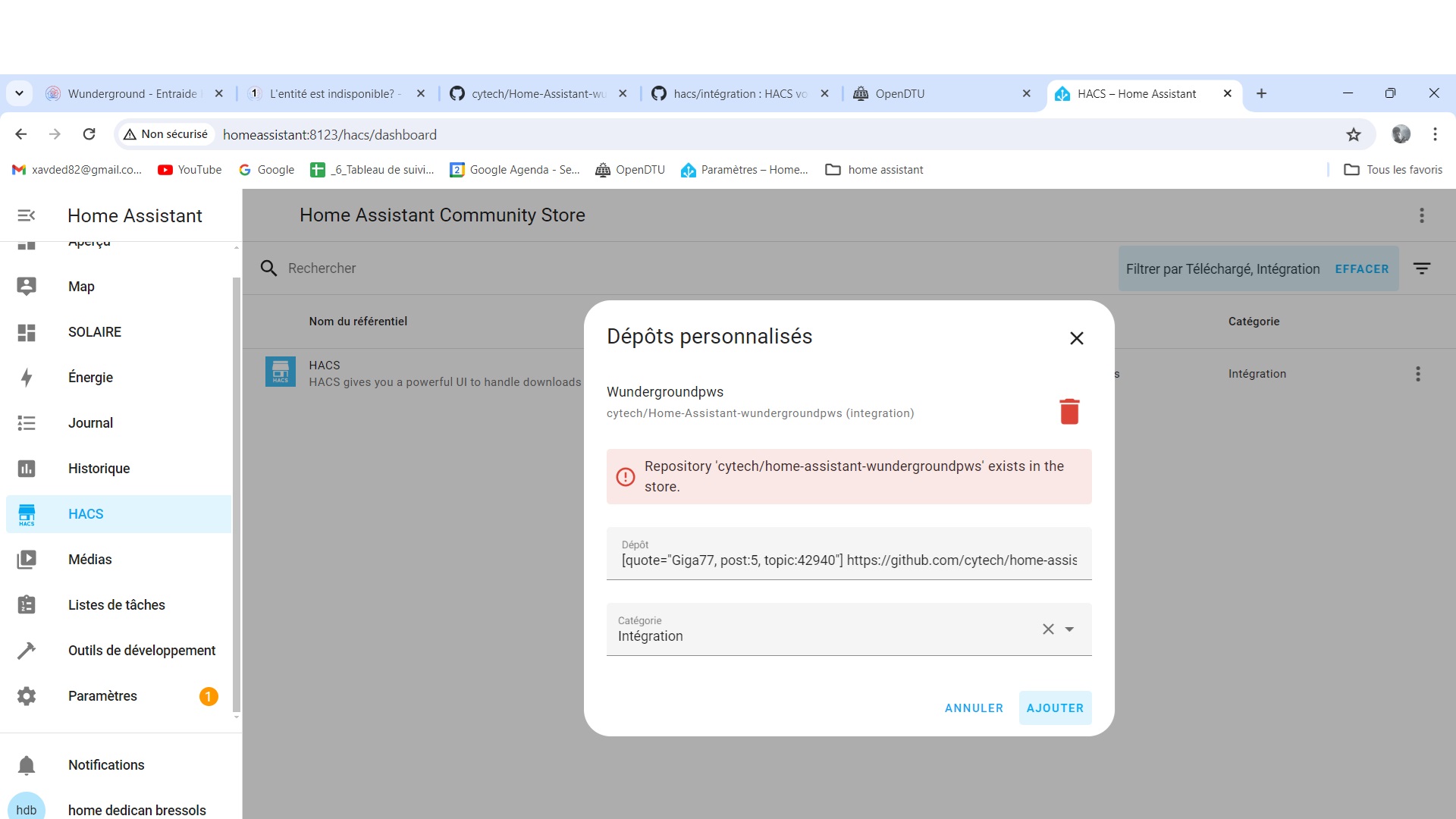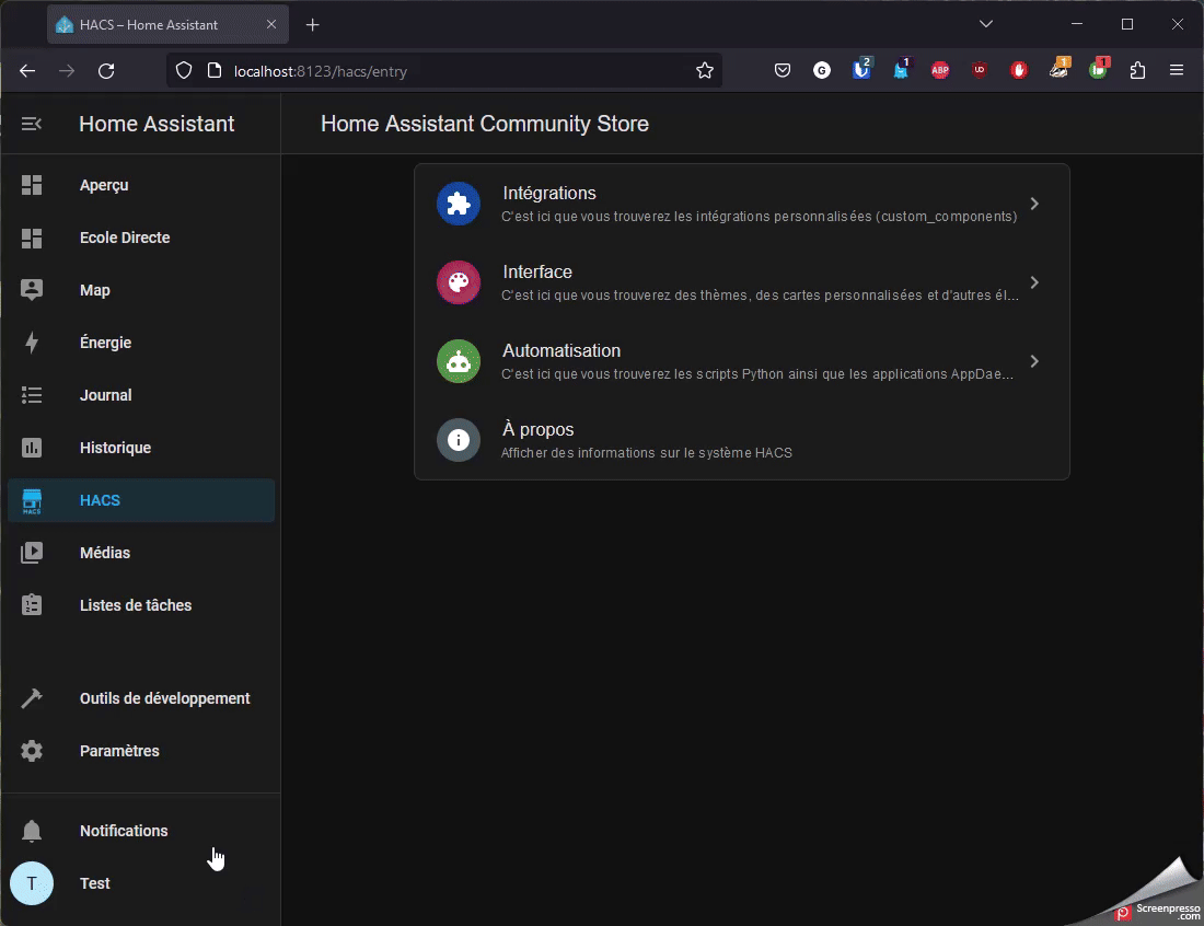 Tu dois désactiver « Experimental features » dans HACS. Ensuite, tu auras les mêmes écrans.