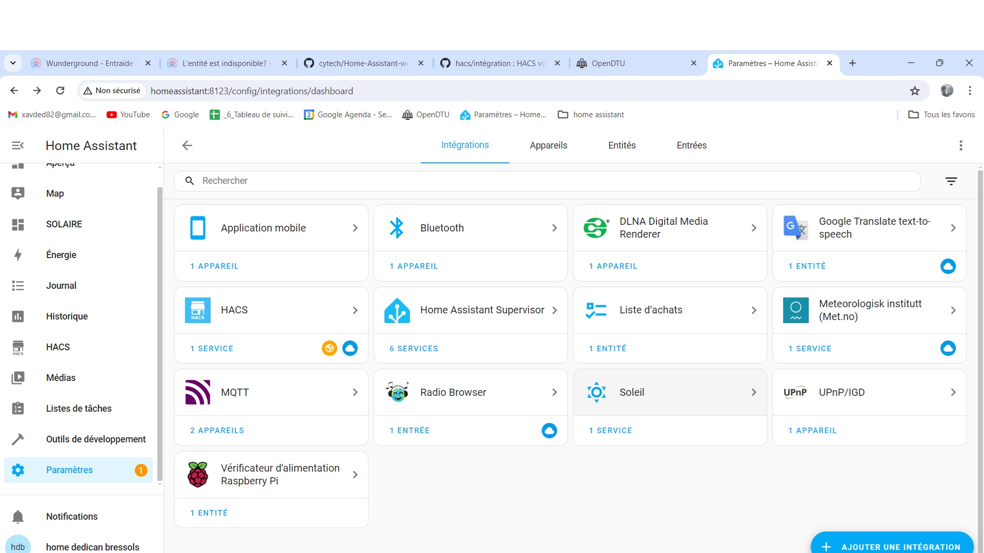 - Dans Paramètres de Home Assistant, sélectionnez APPAREILS ET SERVICES, puis AJOUTER UNE INTÉGRATION.