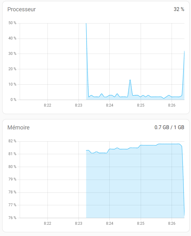 Ton HA est installé sur quoi ? 1 GB de mémoire, c’est peut-être un peu short.