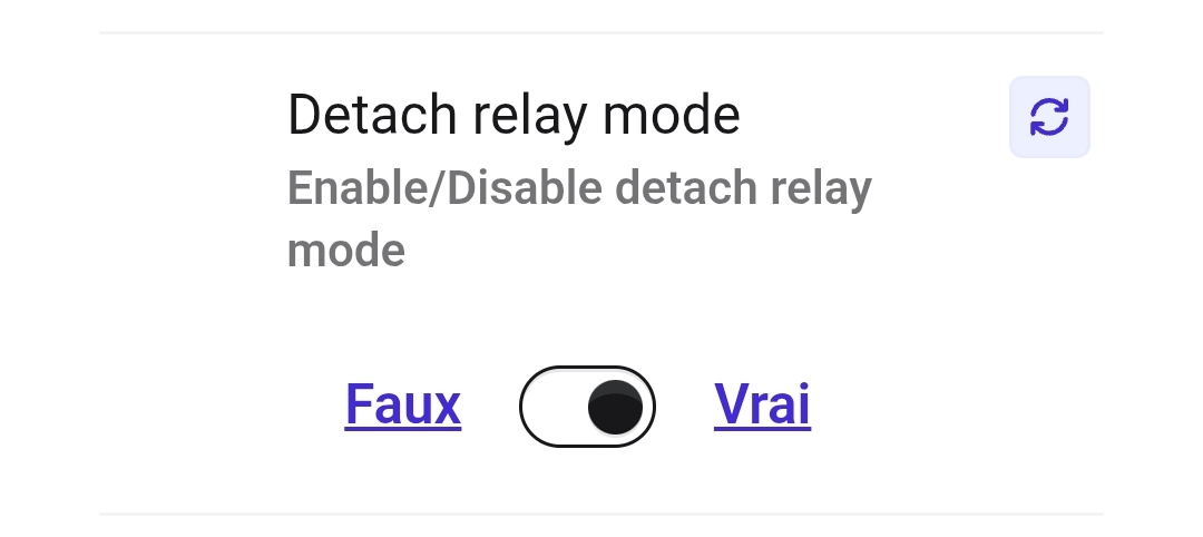 "Pour configurer le mode « Detached Relay », consultez la documentation de votre hub Zigbee (par exemple, pour Home Assistant, recherchez le paramètre switch_mode dans la configuration de l’appareil)."