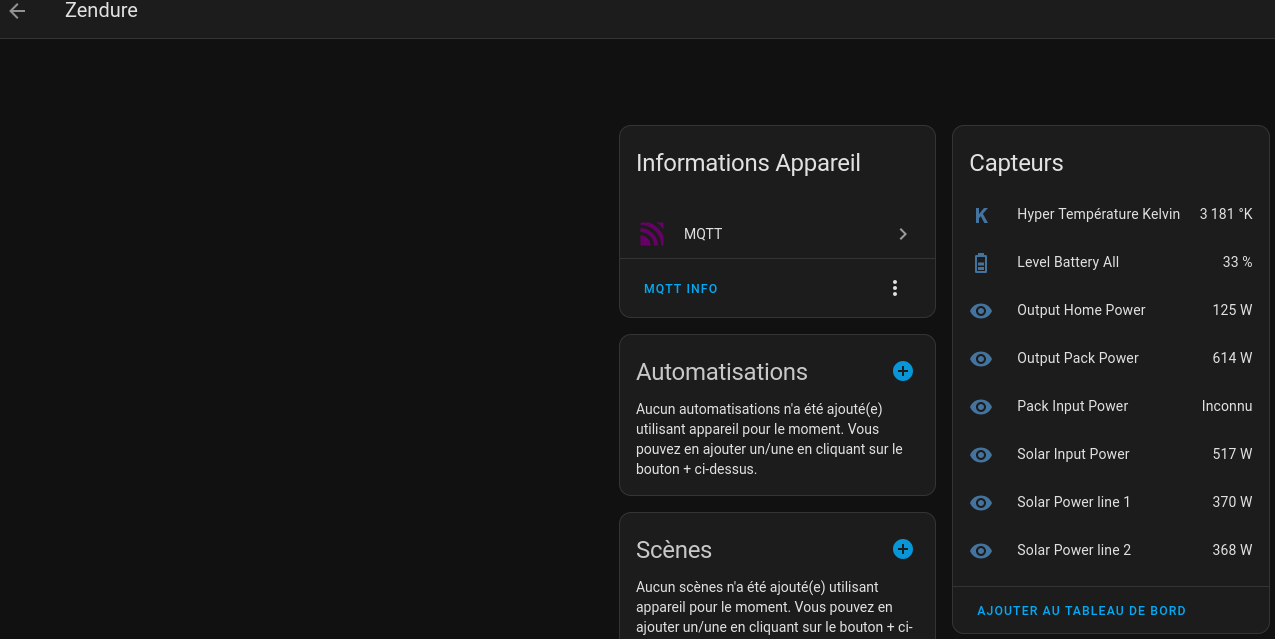 Toutes les données ne sont pas encore toutes configurées. je vous met les differentes valeurs utilisable suivant les differents modeles de Zendure: