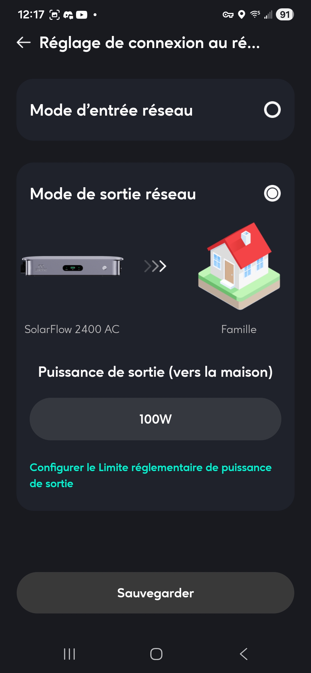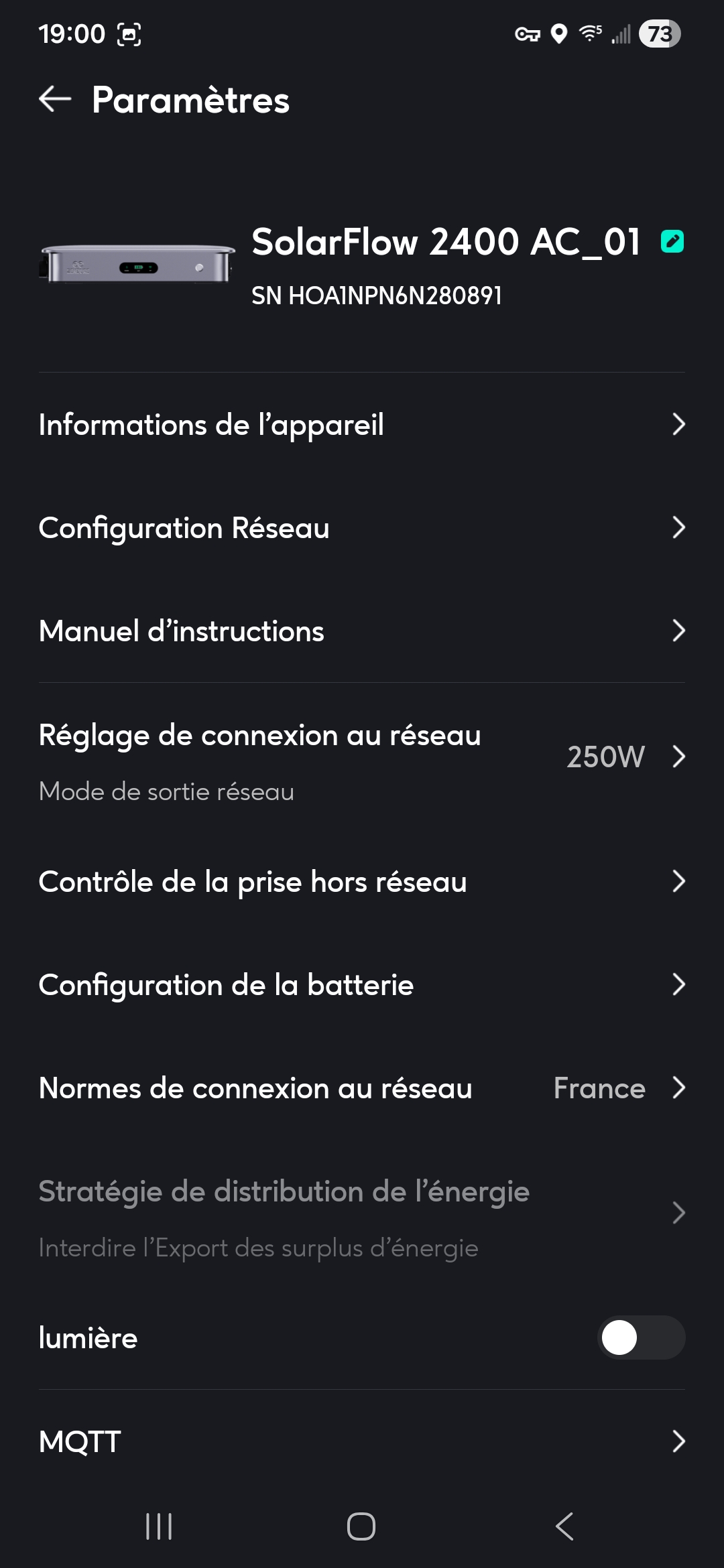 Elles sont piloté via l’application Zendure, et j’ai des retour d’info sur mon Dash. Mais j’ai voulu créer un automatisme sur NodeRed pour faire une gestion Dynamique suivant des paramètres perso. Apriori, mqtt est activé, dialogue bien en publish / subscrib, l’automatisme NodeRed fonctionne, mais il est perturbé par l’application Zendure. La batterie n’est pas dans le HEMS, mqtt est bien activé. Dans la section réglage réseau, 2 options entrée réseau ou sortie réseau. Pour le moment je n’utilise pas la prise hors réseau donc pas de conf, et je suis en norme Française. Le firmware est à jour.