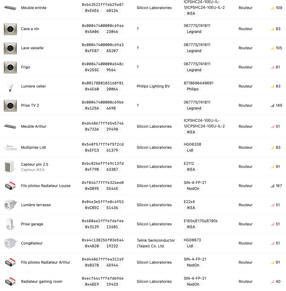 j’ai un routeur en bas qui s’appel meuble entrée et juste au dessus le module de fils pilotes de ma fille. Les LQI sont bons pour les deux et pourtant je n’ai pas de bon signal la haut pour le reste des équipements. J’y ai même installer le répéteur pour qu’il accroche de signal du module de fils pilotes et le répéte mais rien..