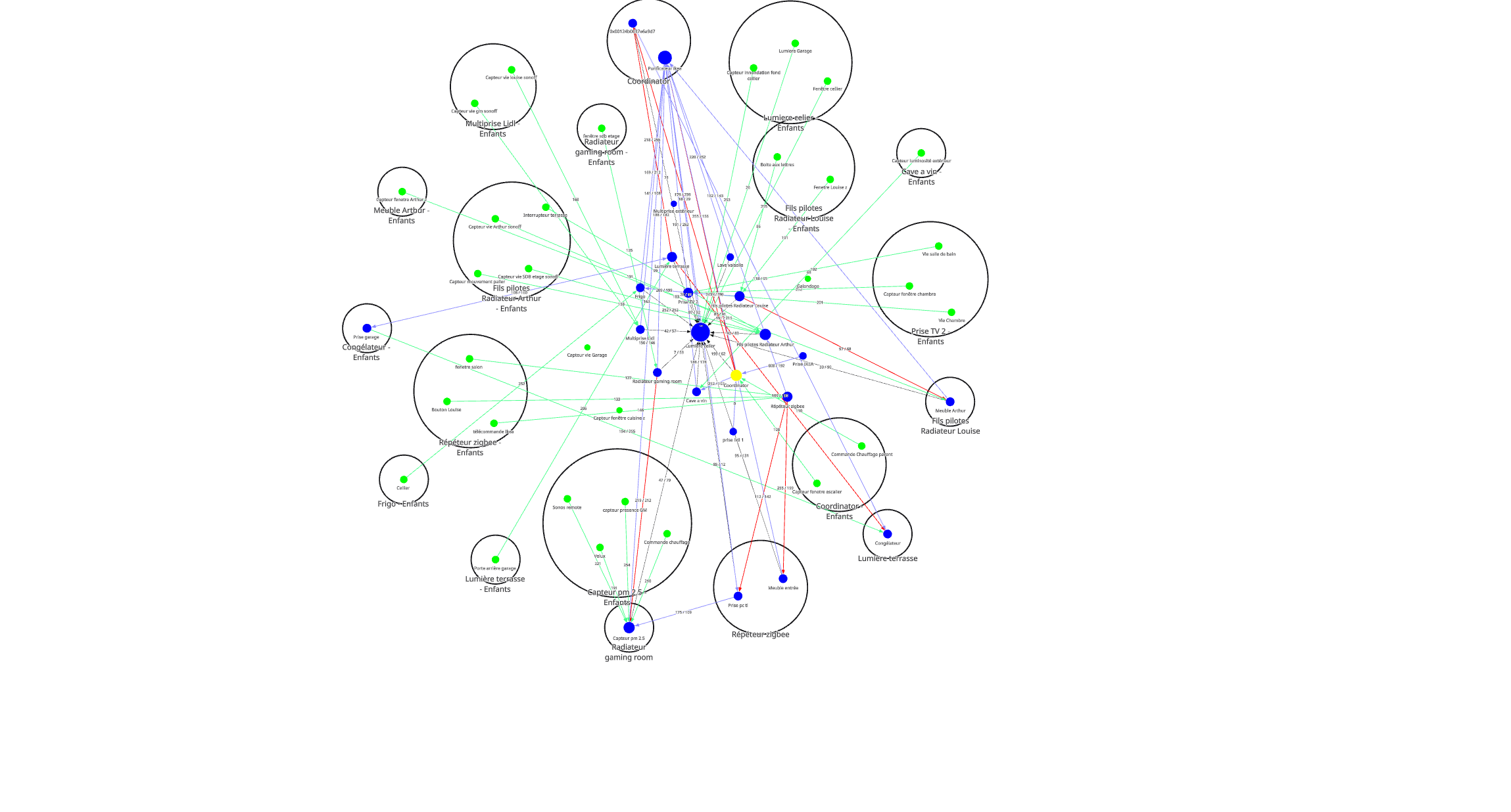 Comme beaucoup, j’essai de faire en sorte que le réseau soit optimal, j’ai donc déployé des routeurs à des endroits qui me semblent stratégiques… et l’étage reste malheureusement une zone complexe à couvrir avec des prises qui ont un LQI de 1 ou 2