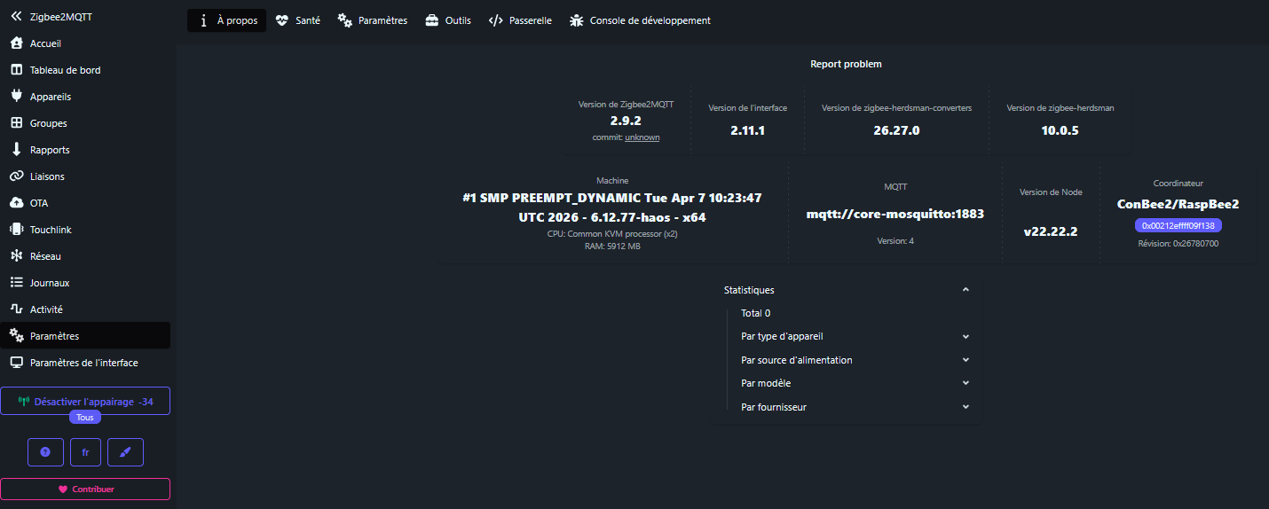 Les erreurs rencontrées sur Zigbee2MQTT avec le dongle ConbeeII (Firmware : 0x26780700) :