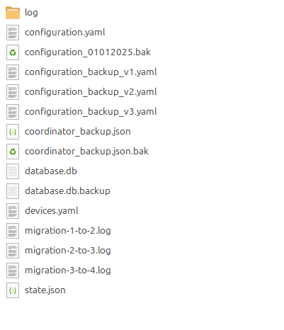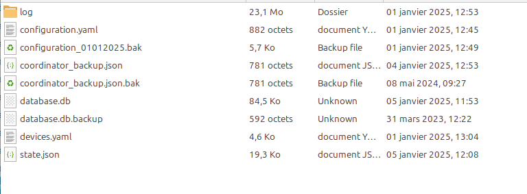 Contenu de mon dossier zigbee2mqtt apres mise a jour: