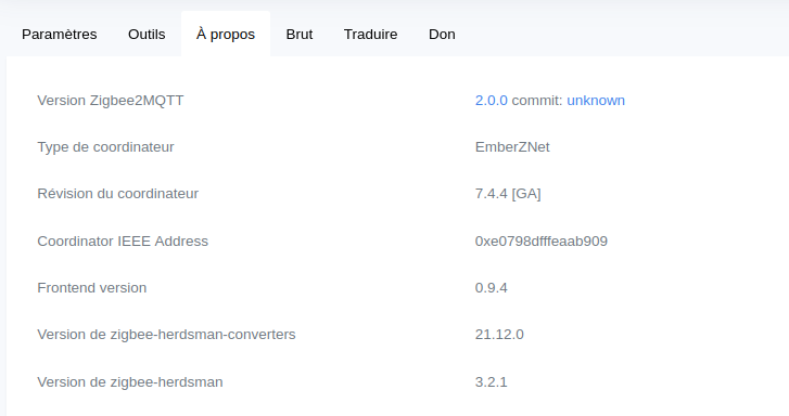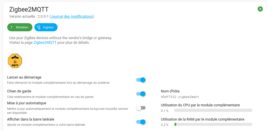 \addon_configs\45df7312_zigbee2mqtt a été créé mais il est vide.Informations interface Z2M :