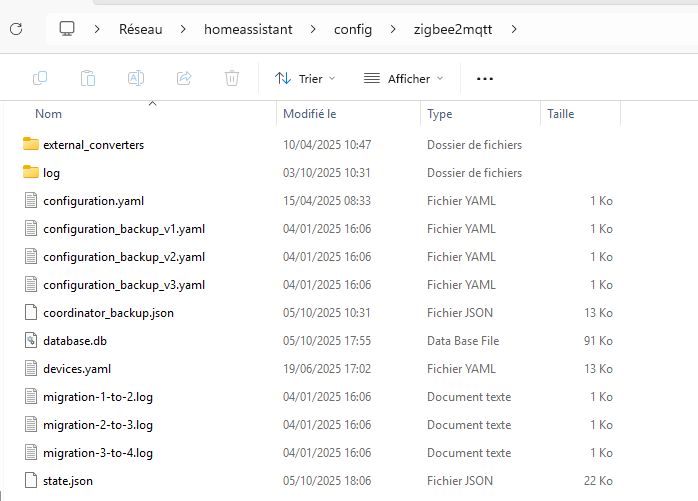 Est-il possible de récupérer la configuration existante pour la remettre sur ma nouvelle installation? J’adapterai bien sur les quelques paramètres type adresse mqtt, adresse de la ConbeeII…