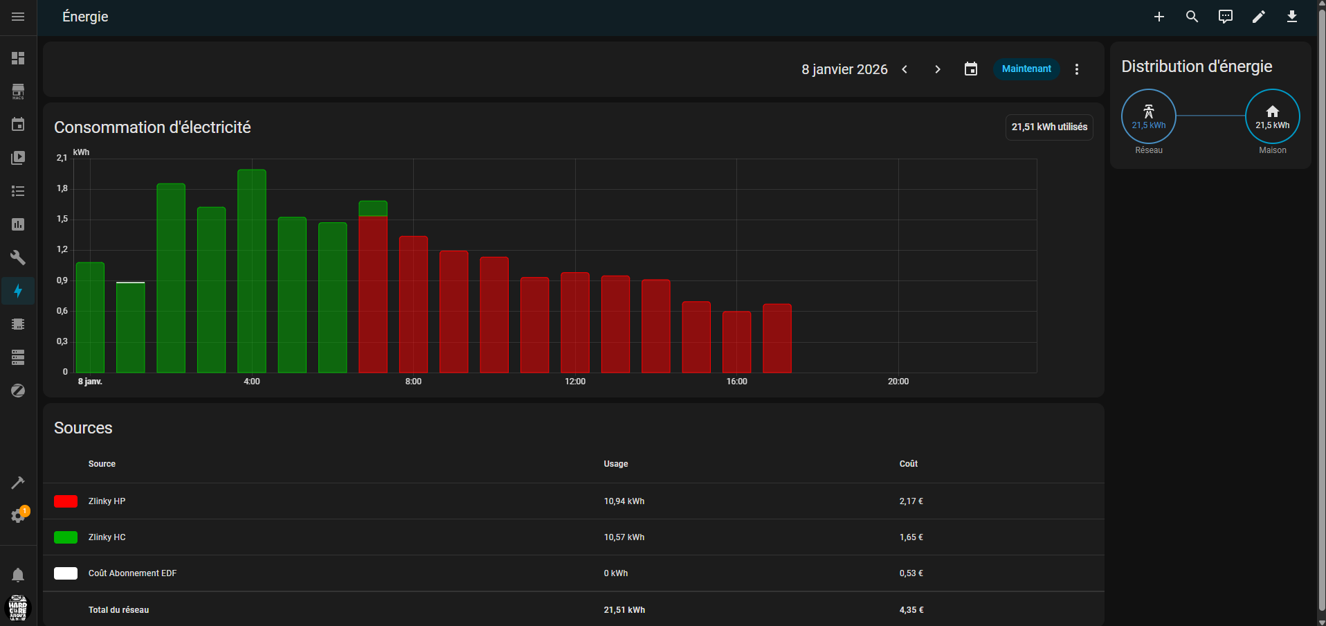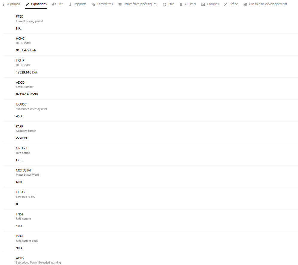 Je vois sur certains posts beaucoup plus de capteurs que moi. Je suis en mode Historique, HP/HC.