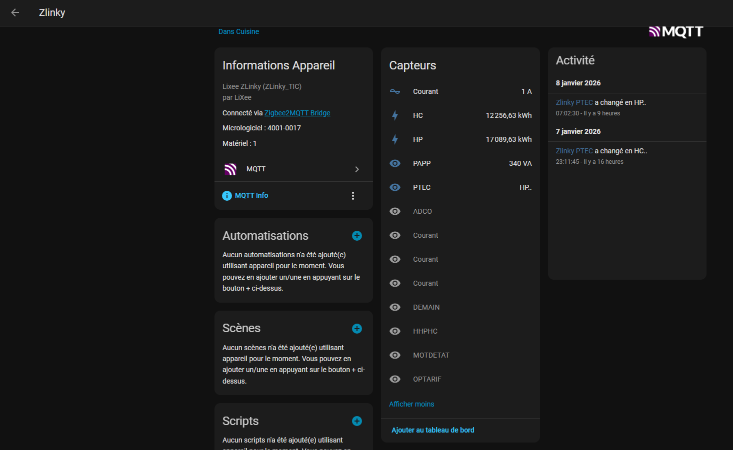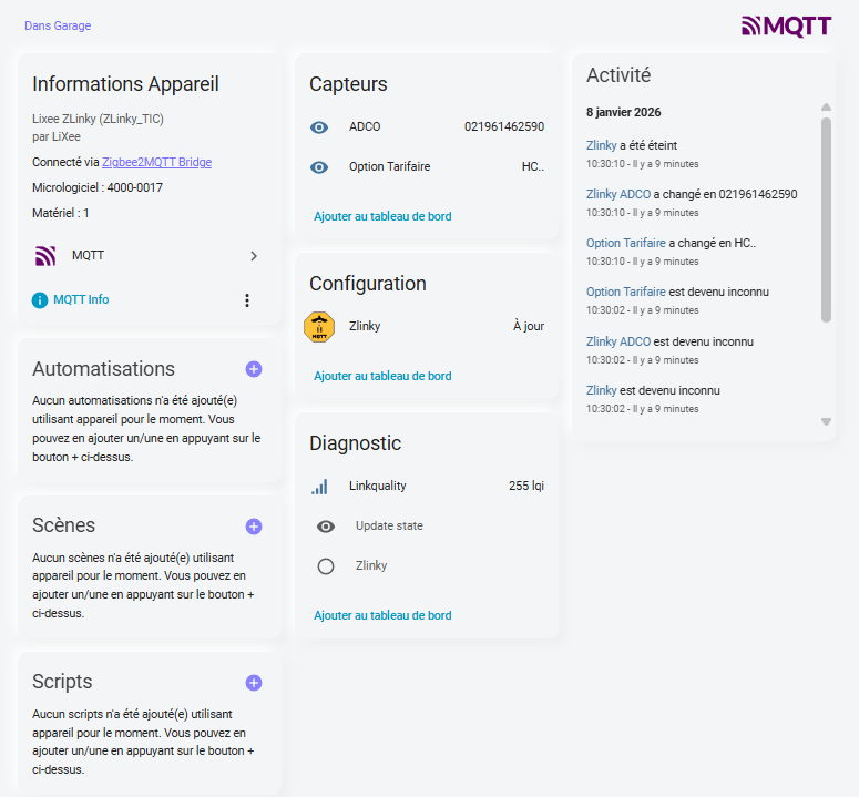 Bonjour, J’ai installé depuis quelques temps Zlinky avec MQTT et je remonte des données.