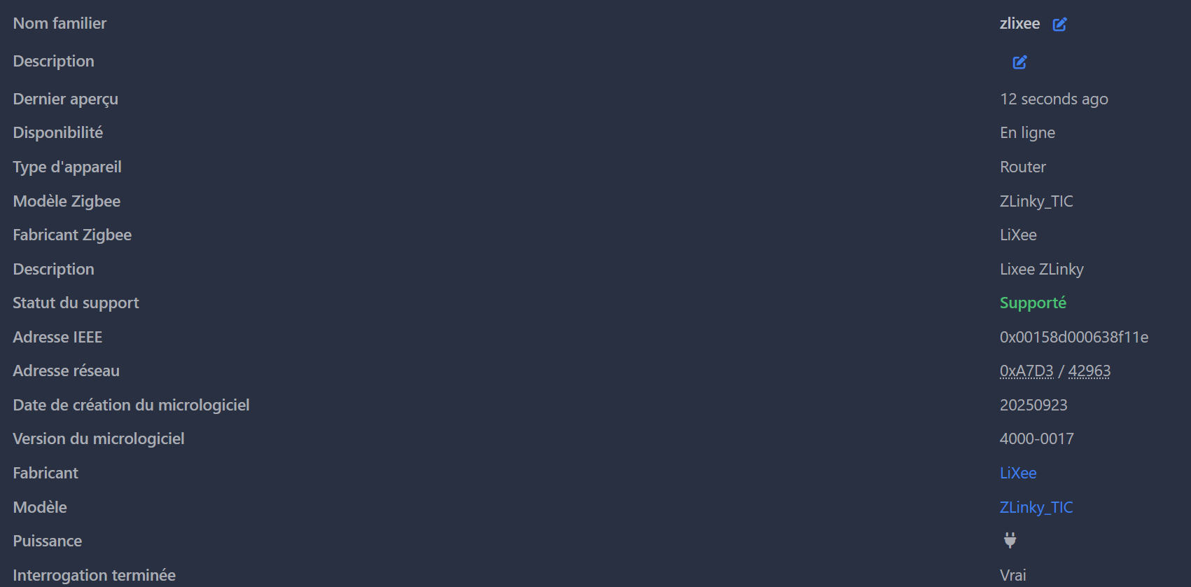 zhc:lixee: Failed to read zigbee attributes: Error: ZCL command 0x00158d000638f11e/1 liXeePrivate.read([« currentTarif »,« motDEtat »,« scheduleHPHC »], {« timeout »:10000,« disableResponse »:false,« disableRecovery »:false,« disableDefaultResponse »:true,« direction »:0,« reservedBits »:0,« manufacturerCode »:null,« writeUndiv »:false}) failed (Delivery failed for ‹ 60493 ›.