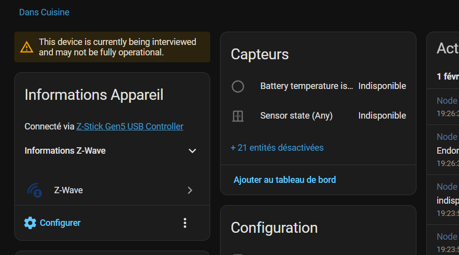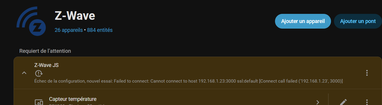 J’ai sauvegardé la configuration de Zwave puis restauré côté Home Assistant, mais je pense que des choses sont à rectifier, surtout pour que le lien mqtt fonctionne.